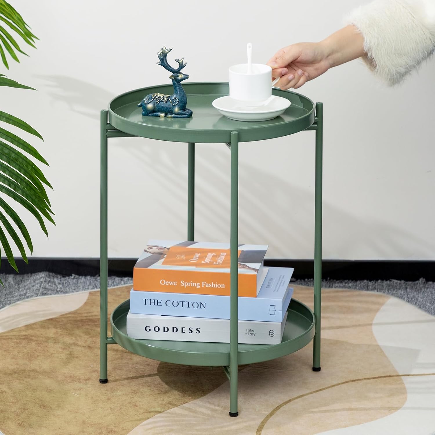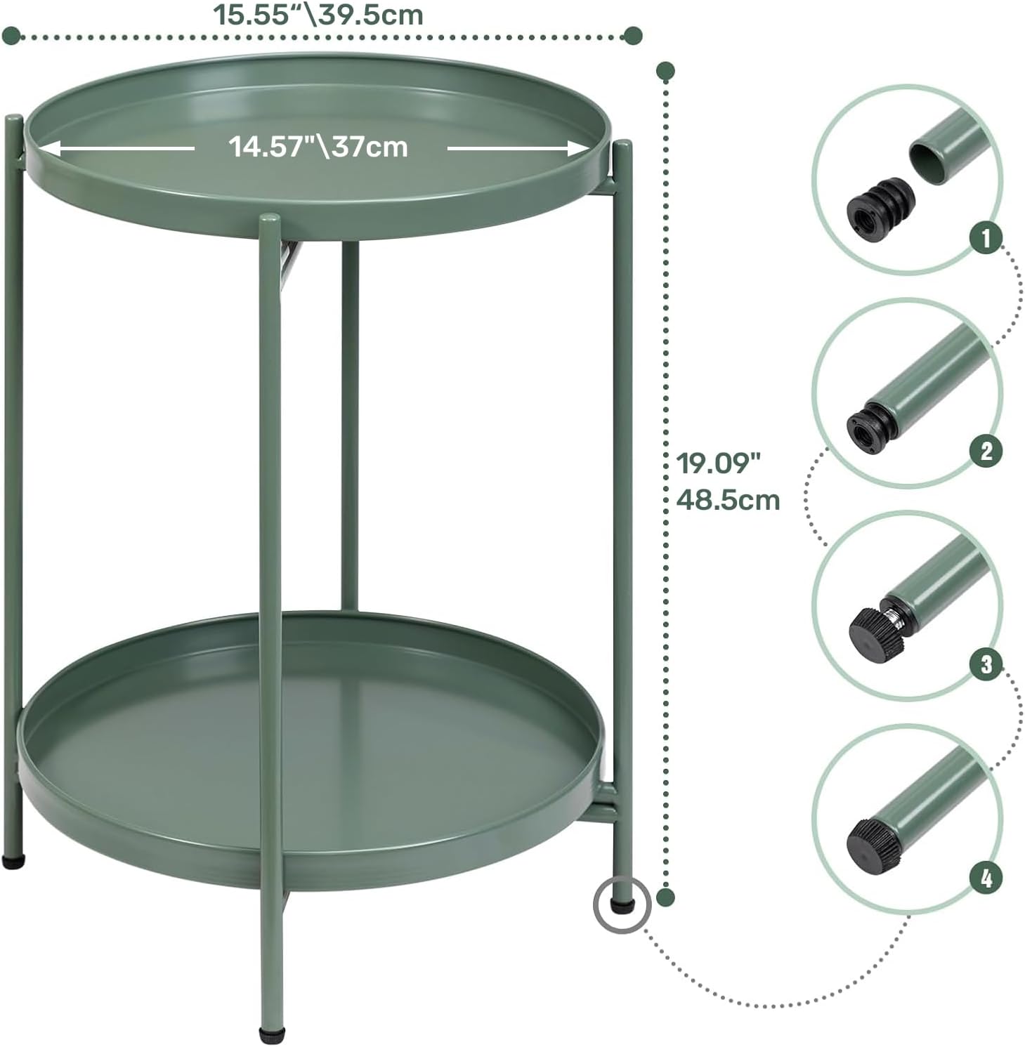 Lightweight yet durable, the Nesta table features a rust-proof, waterproof metal construction that’s suitable for indoor use and occasional outdoor placement. Its foldable design allows effortless repositioning, while the smooth non-slip tray edges help keep items secure. Finished in a refined green tone, this accent table blends seamlessly with a wide range of décor styles.