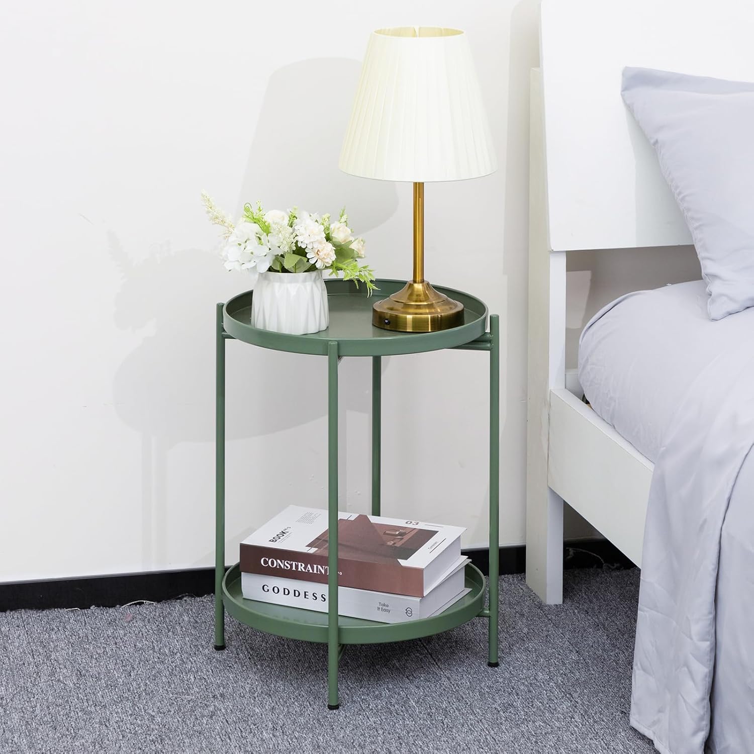 Add versatile elegance to your home with the Nesta 2-Tier Removable Round Bedside Table – Green. Designed with a sleek metal frame and a stylish double-tray layout, this modern side table offers both practicality and visual appeal. The removable trays make it easy to serve drinks or snacks while keeping everyday essentials neatly organized.