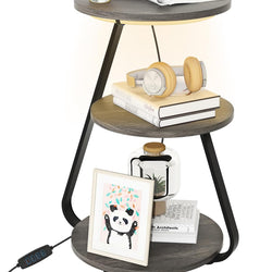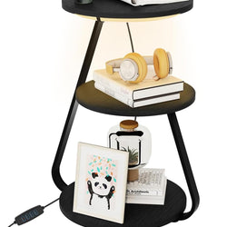 Elsun Bedside Table 3 Drawers with LED Lights and Wireless Charging Pad - Black