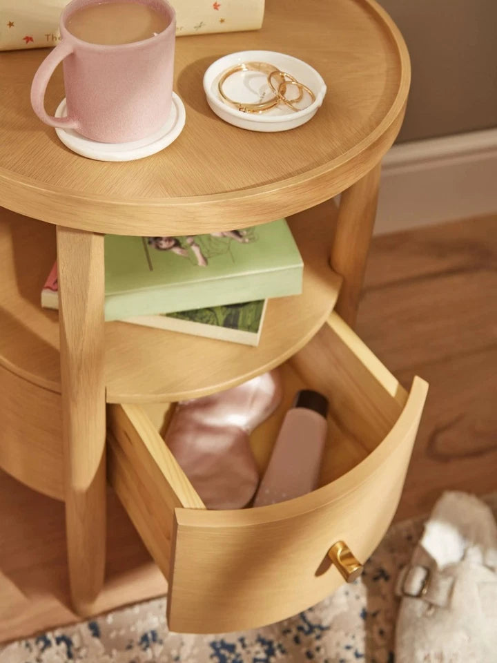 Taylor Nordic 2-Tier Round Bedside Table - Oak