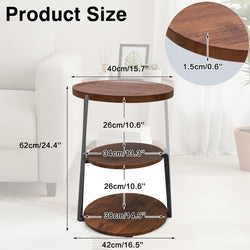 Fraser 3-Tier Round Bedside Table - Rustic Brown