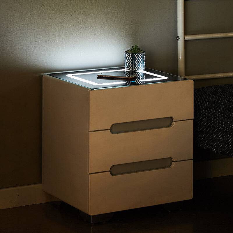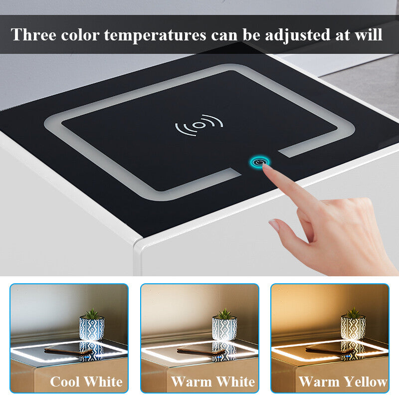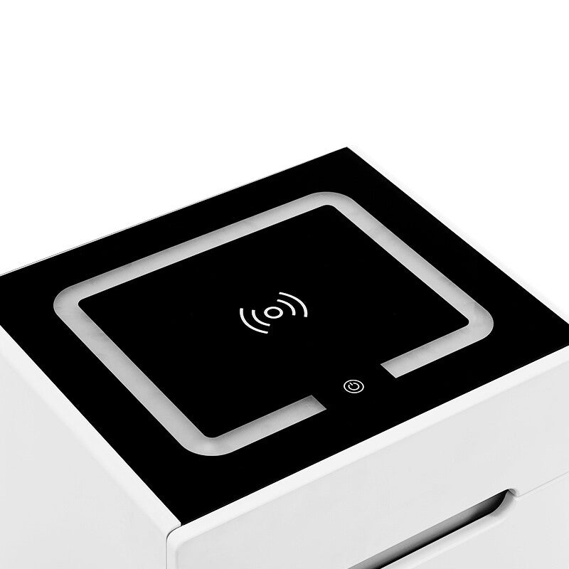 The Elford LED Wireless Bedside Table in white combines modern design with smart functionality to elevate any bedroom. Crafted from high-quality MDF and chipboard with a sleek tempered glass top, it offers both durability and style. The built-in LED lighting adds a soft ambient glow, creating a calm and inviting atmosphere. With its clean white finish and contemporary look, the Elford fits perfectly in both minimalist and modern interiors.