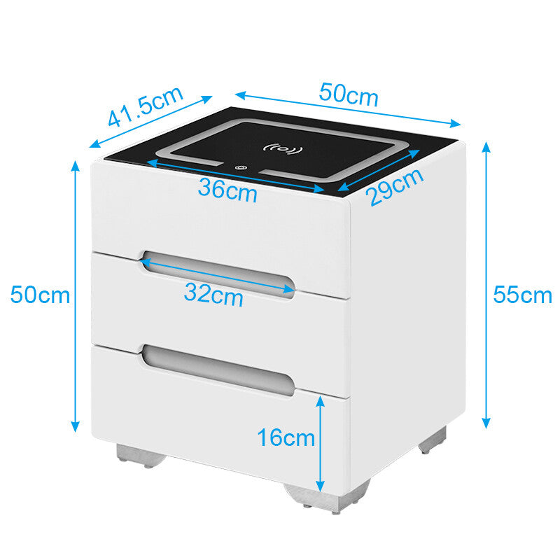 Designed for convenience, it features an integrated 12V 20W wireless charging pad so you can power your devices without messy cables. The three drawers provide generous storage for your essentials, and the compact size of 50 cm long, 41.5 cm wide, and 55 cm high makes it suitable for any bedroom layout. Easy to assemble and thoughtfully designed, the Elford bedside table brings together smart technology, practicality, and everyday elegance.