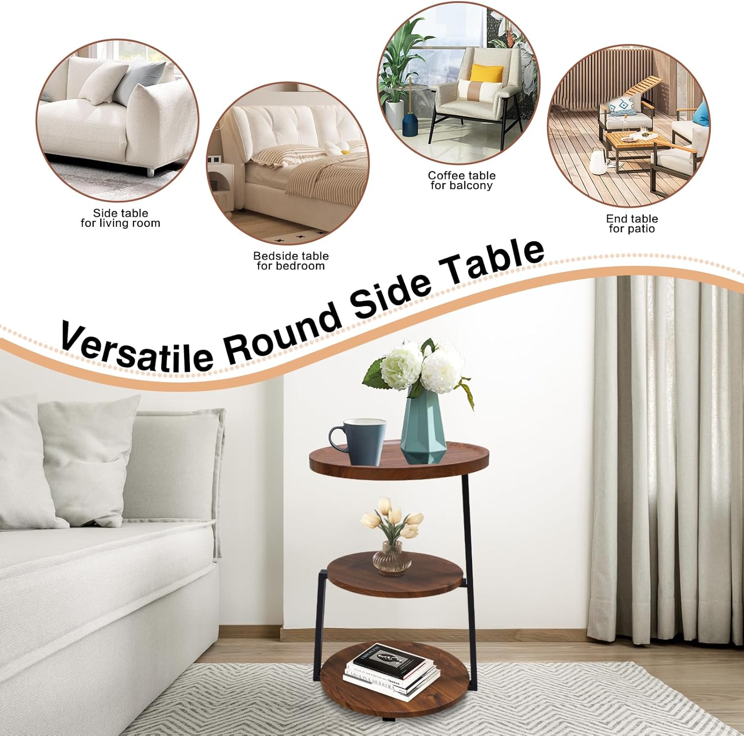 Featuring three open tiers, this bedside table offers easy access to books, décor, plants, or daily essentials while maintaining a tidy look. Built with a sturdy metal frame and durable wooden shelves, it provides reliable stability and everyday functionality—making it a practical and stylish companion beside your bed or sofa.
