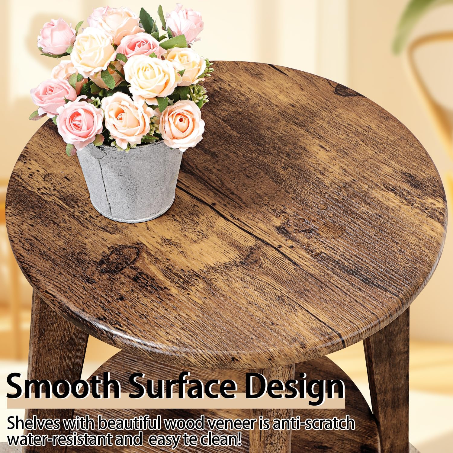Enhance your space with the Linden 2-Tier Small Round Bedside Table – Brown, a perfect blend of modern farmhouse charm and everyday practicality. Designed with two round wooden shelves and four solid wood legs, this compact side table delivers excellent stability while maintaining a clean, stylish profile ideal for small spaces.