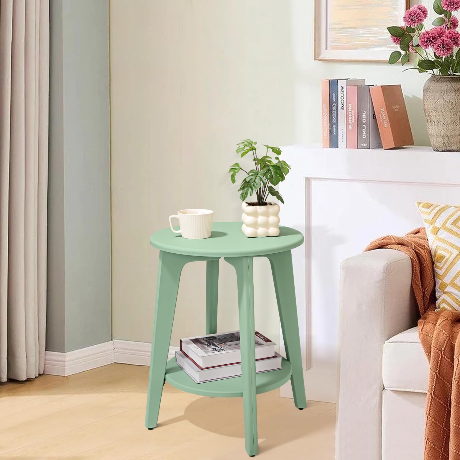 Enhance your space with the Linden 2-Tier Small Round Bedside Table – Green, a perfect blend of modern farmhouse charm and everyday practicality. Designed with two round wooden shelves and four solid wood legs, this compact side table delivers excellent stability while maintaining a clean, stylish profile ideal for small spaces.