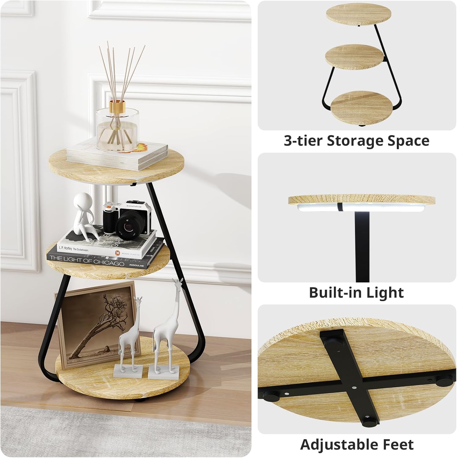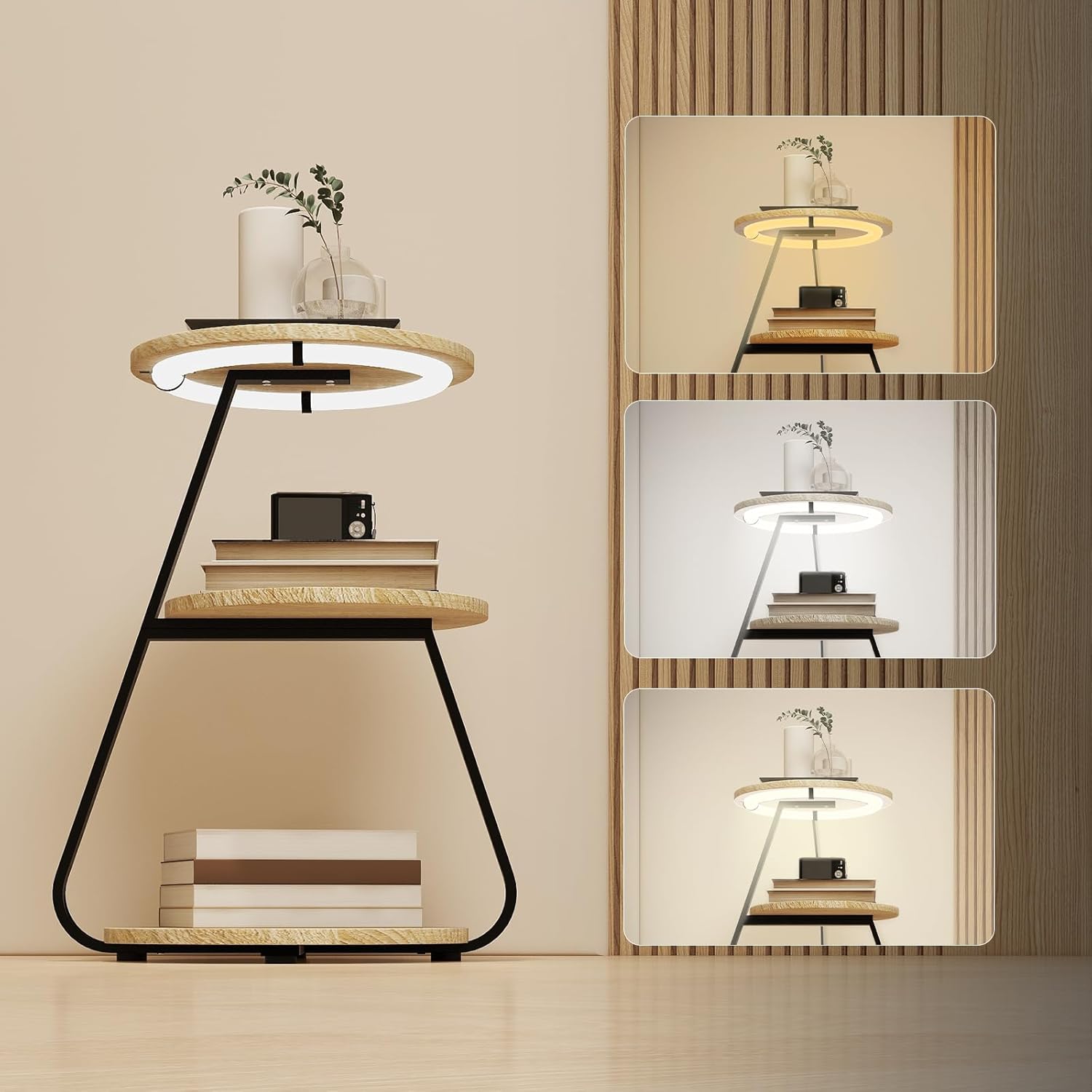 Designed with three open shelves, this bedside table offers generous storage for books, phones, décor, and everyday essentials. The built-in 3-colour LED lighting allows you to switch between natural, warm, and yellow light, creating the perfect atmosphere for relaxing, reading, or nighttime use.